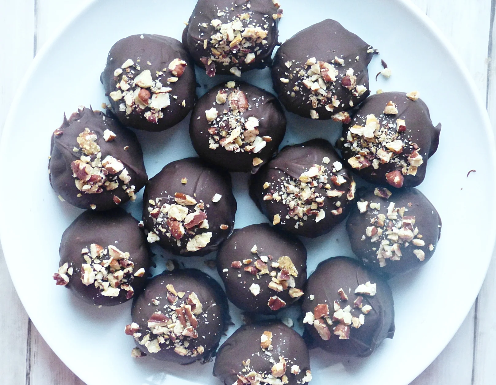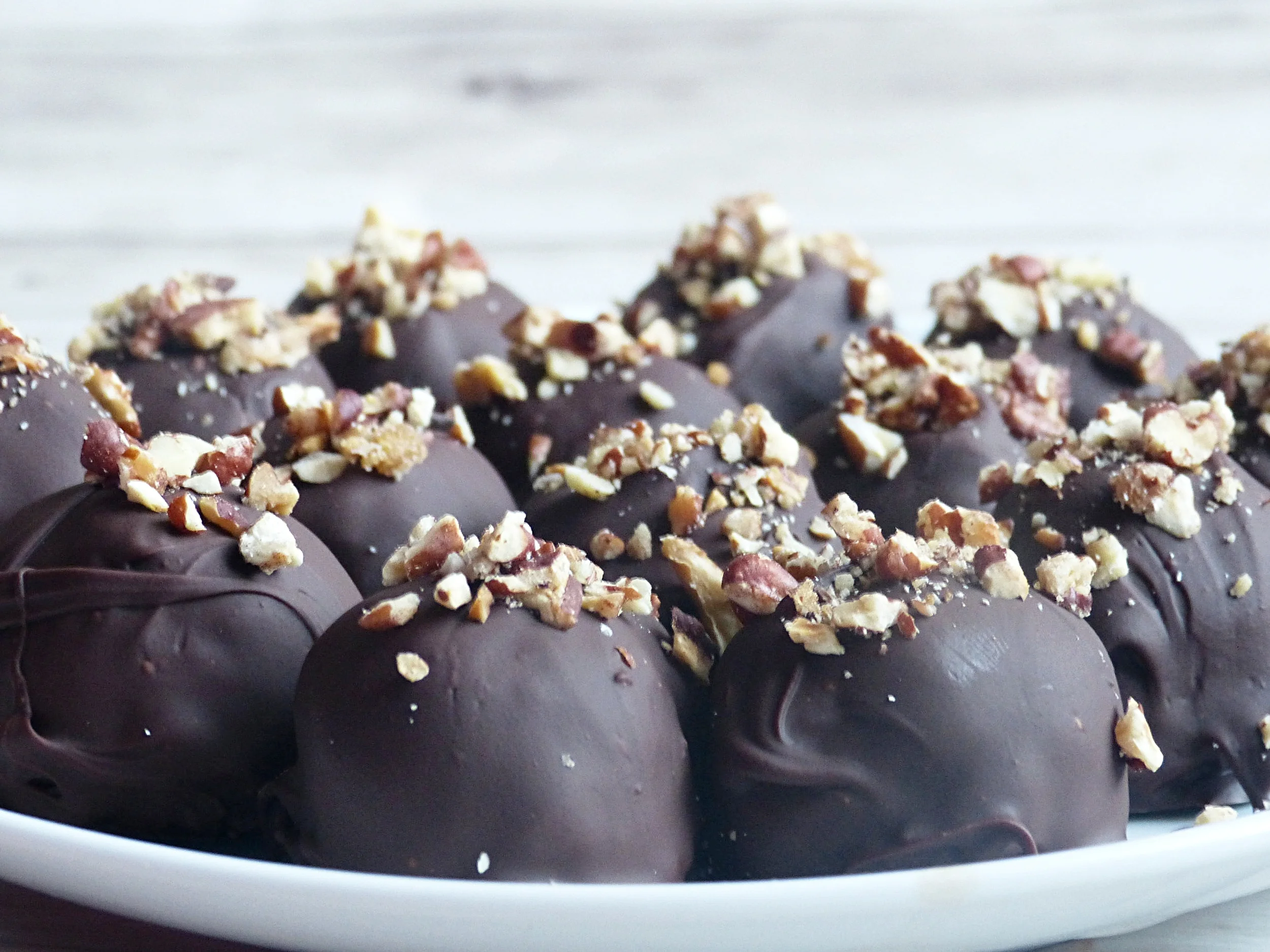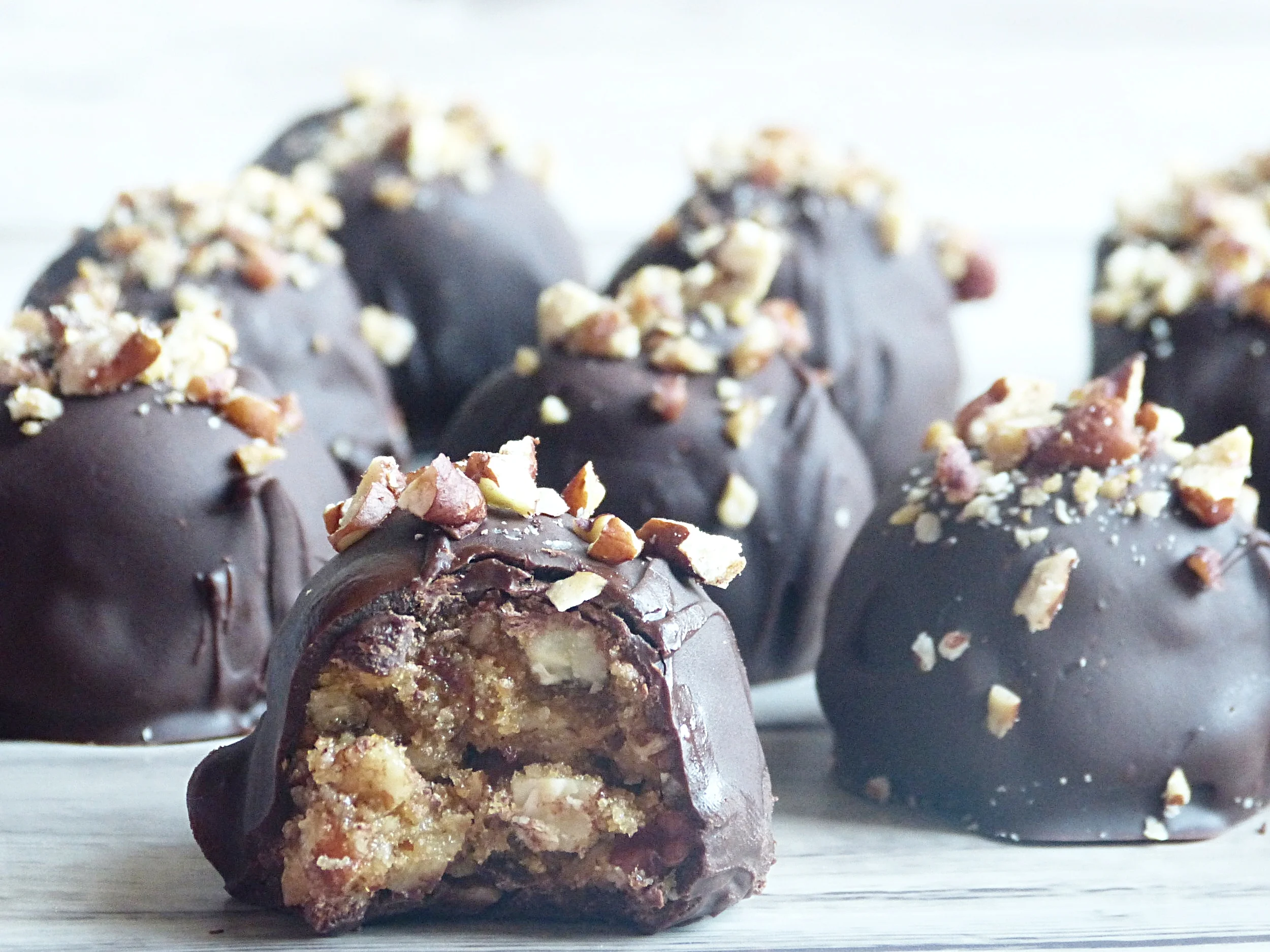 I didn't eat pecan pie for as long as I can remember, for a reason I still have no idea. It was always pumpkin pie at our Thanksgivings so maybe I just never had the chance, but now that I have it's easily one of my favorite pies. My only issue is, it's so sweet, I don't think I could actually eat an entire piece of pie, sadly. That's where these truffles come in to play! Bite sized pieces of pie for when you need a taste of Thanksgiving.